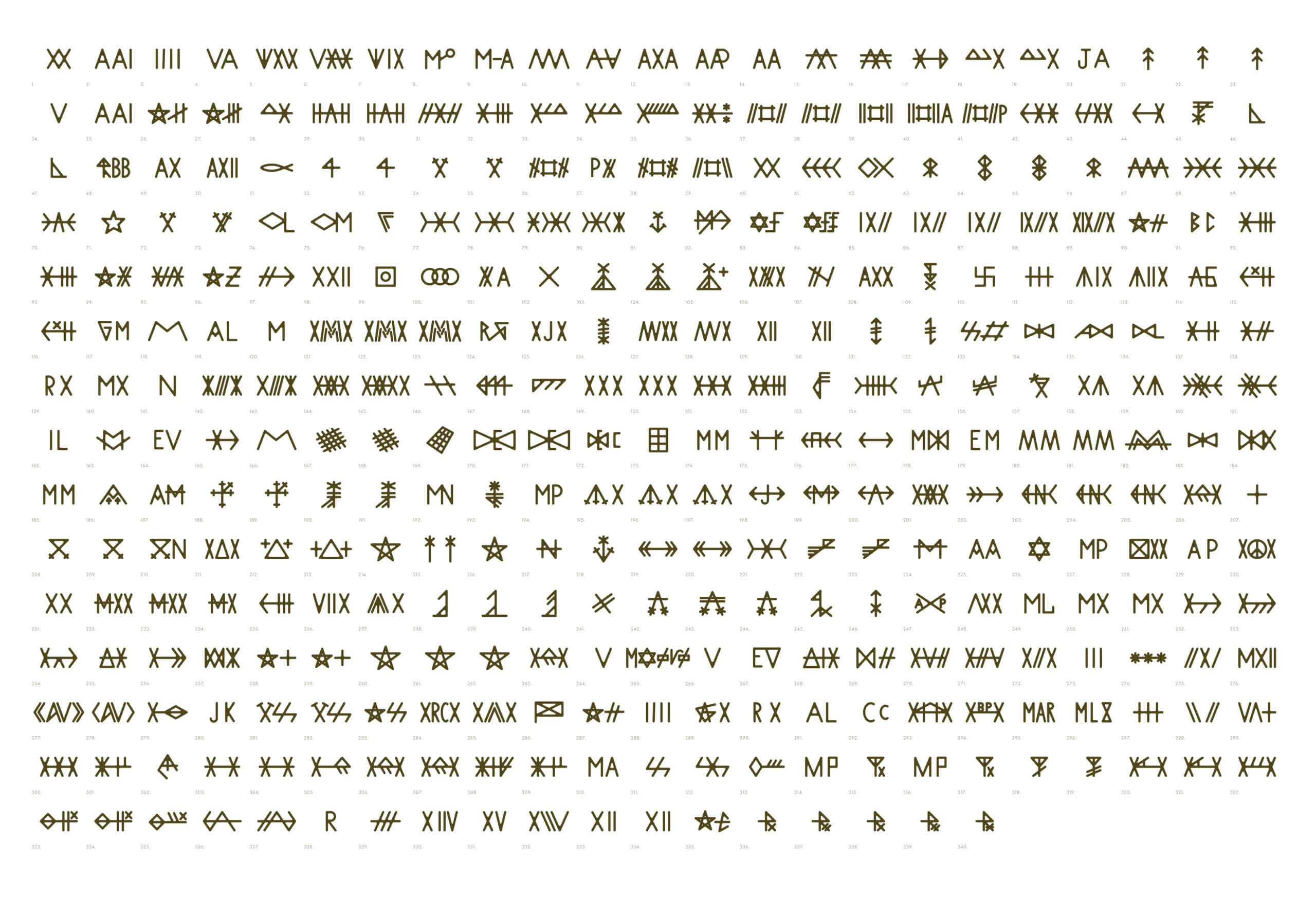 Based on the original inscription methods, geometric strokes were softened with rounded corners, echoing the wear of wood and granite. A modular grid was developed to ensure legibility and versatility while preserving their original character.